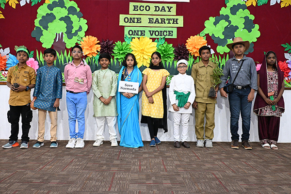 Chandra Sasya of class V E delivered a speech highlighting the significance of environmental conservation and sustainable practices. A melodious song about the importance of trees was performed by students under the guidance of our music instructor Mr Vivekananda. A group of students presented a thought provoking skit about the renowned environmental activist Greta Thunberg emphasizing the role of young minds in driving the positive change. Next it was a ramp walk segment to inspire students to learn from these environmental activists their dedication and passion for protecting the planet. A vibrant dance themed around the importance of trees was performed. A meaningful Eco pledge where students collectively promised to adopt environmental friendly habits in their daily life. Our beloved Principal mam Mrs Qamar Sultana addressed the students applauding their efforts on the performances in bringing the Eco Day a success. Mrs Padma concluded the assembly with a vote of thanks expressing the gratitude to all the participants and attendees.