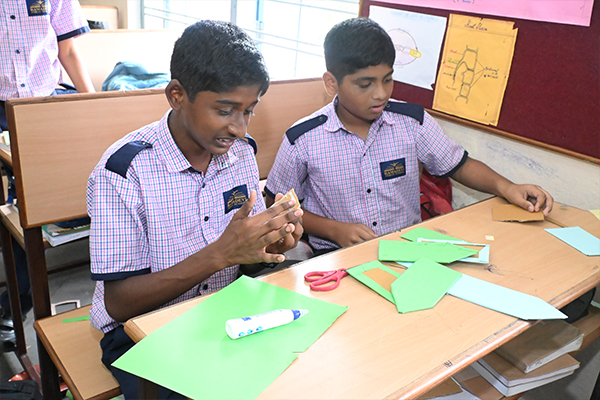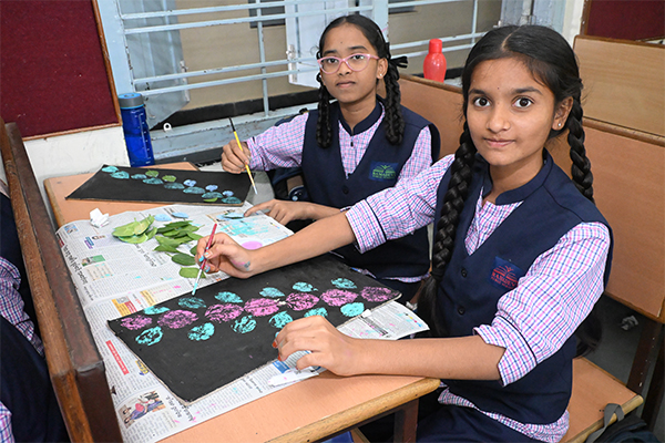 - Class VI engaged in hands-on activities such as leaf printing, eco mandala creation, and healthy snack sharing. These activities encouraged students to connect with nature, explore its patterns, and make conscious food choices using reusable containers and nutritious ingredients.