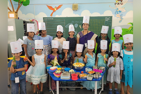 We motivate our children to include healthy vegetables in their daily diet. As a part of our commitment to nurturing healthy habits in our young minds. The pre-primary of Ramadevi Public School conducted Young Chef Healthy Salad activity on Friday 18th July, 2025.