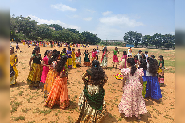 Students across all classes actively participated in the Bathukamma festivities. They brought or created beautiful floral stacks and enthusiastically danced to traditional folk songs, embracing the essence of Telangana's iconic festival.