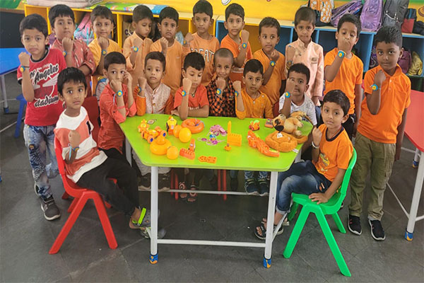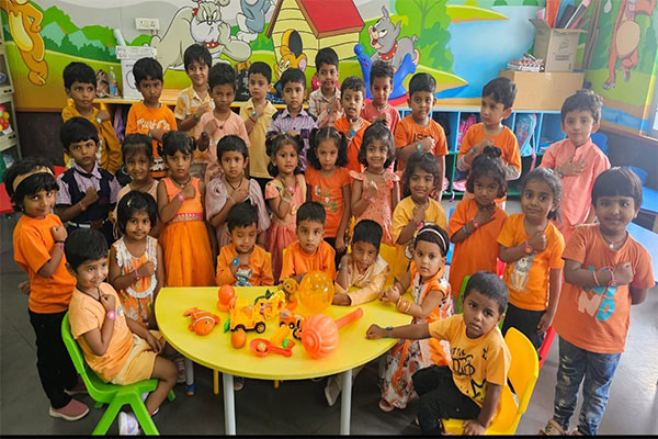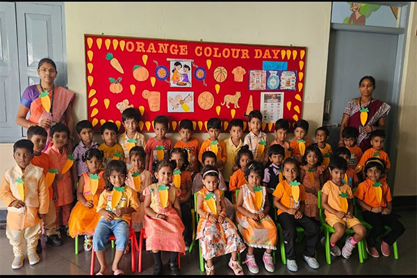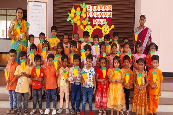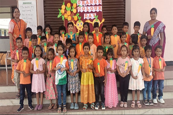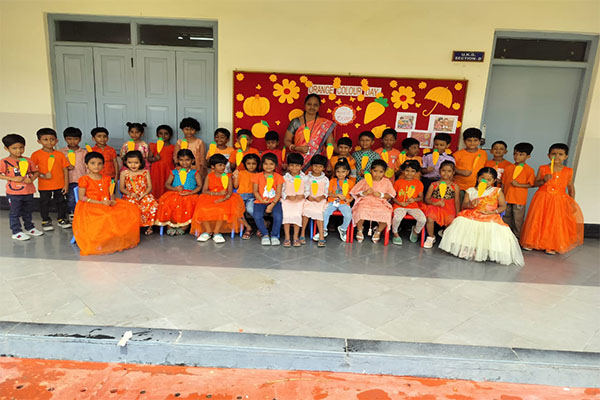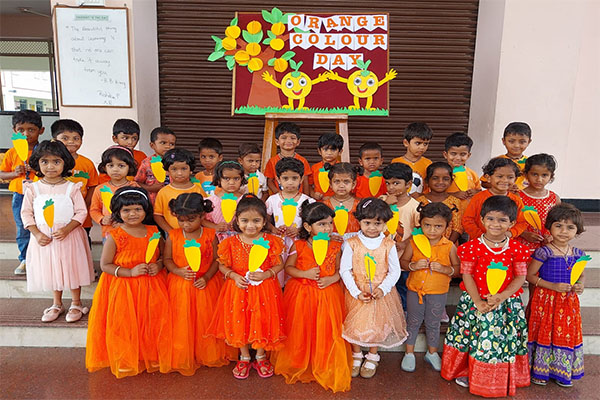 It was pleasant and cool Orange day for the tiny tots. Orange colour is associated with energy enthusiasm and creativity and also can evoke feelings of warmth and excitement. The objective of the Orange Colour Day Celebrations was to help Children to recognize and associate Colours with real world objects.