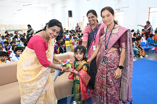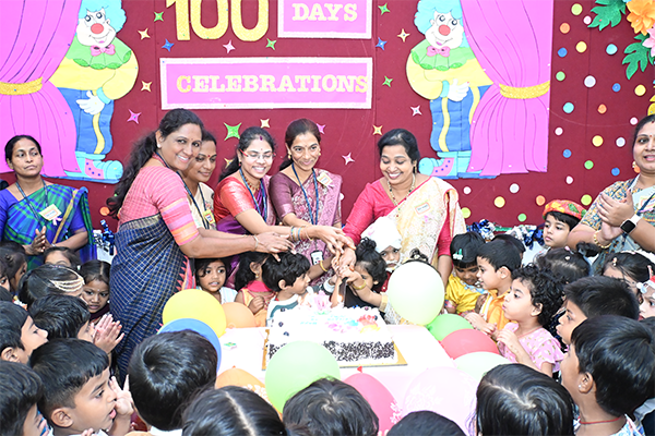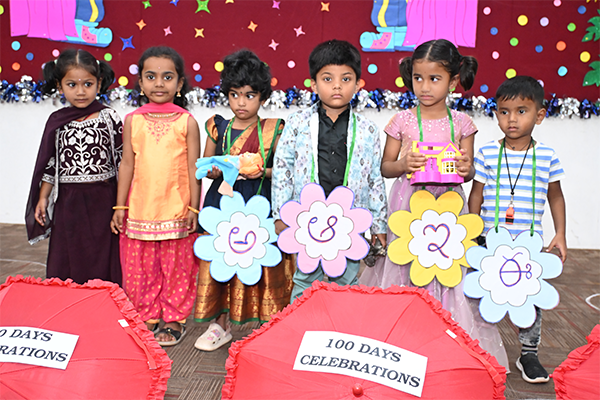 We proudly celebrated our nursery children 100 days event . Our tiny learners have been growing, learning, playing, and enjoying their school time every day. On this special day we had celebrations in the assembly hall. The children started the programme with a devotional song. They also narrated a Telugu story, showing their confidence and speaking skills.