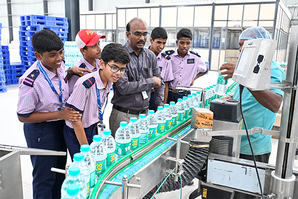 Good discussion points were supply-chain, the environmental footprint compared to plastic and water bottle manufacturing unit where the factory balanced mechanization. Automatic units filled with lids, seals and labels. Bottles passed through conveyer belts, packaging units and labeling work. These units illustrated how they can meet regulatory requirements and how they maintain the quality of the products.