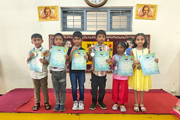 Children’s day is a special occasion dedicated to celebrate the innocence, joy and potential of children. The preparation began a week earlier and the school was beautifully decorated with posters. The day began with cheerful welcome. Conducted handwriting competition and students prepared greeting cards. The special assembly started with school prayer and thought of the day, including a lovely and welcome speech about Chacha Nehru and his affection for children, welcome Chacha Nehru on the dias. The cultural show was the main attraction where one of the teachers read humorous news, followed by mimicry, students were very much excited. Choir song by the teachers and a humorous skit by the telugu faculty had left everyone laughing. The teachers surprised the students with a dance performance and continued with puppet show by the teachers. The winners of Cultivating Art Competition were honoured. The kindergarten children enjoyed fun and energetic outdoor activities. They participated in various games like hoola loop pass game, hitting the cups and bowling play race games. Children enjoyed free play with their friends. The entire celebration aimed to bring joy to students and remind them to their importance in shaping the future of the nation. The Children of Class 1 and 2 enjoyed various games conducted by the class teachers. The event concluded successfully and left the students with beautiful memories.