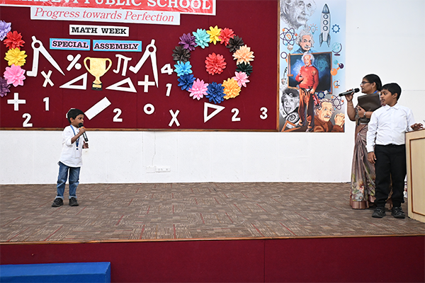 A special assembly on December 31st, 2025 – kicked off with a thought-provoking math quote, followed by a speech on significance of National Mathematics Day. The tiny tots of classes 1-2 charmed everyone with shape-themed poems. Master Shashivardhan Reddy of class 2, presented his mathematical skills. The assembly's highlights included a soulful song on Ramanujan's legacy and an energetic dance performance showcasing math symbols and angles.