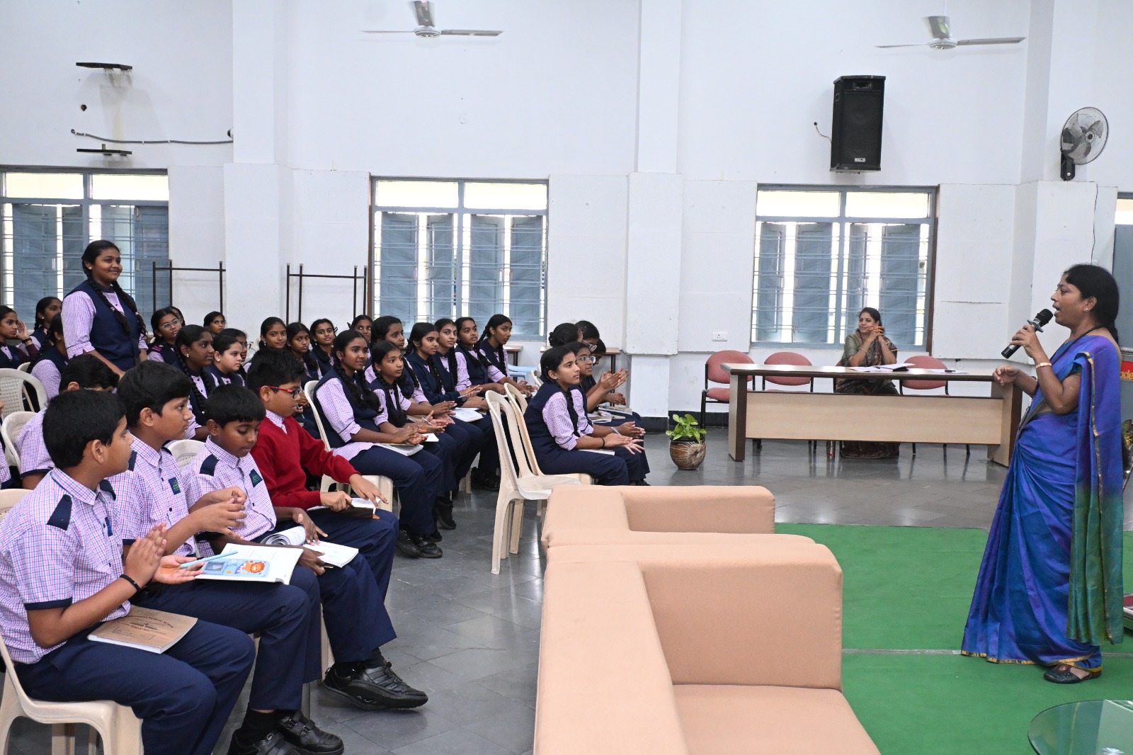 The session began with an introduction of the students' leaders and welcoming them to the team of leaders by the Academic co-ordinator Mrs Poojitha. They were told about the importance of student leadership in creating a positive and disciplined learning environment. Mrs Bahumathi, facilitator from the Chemistry department, explained the roles and responsibilities of monitors, which included assisting teachers, maintaining discipline, promoting class unity, and serving as a link between students and staff.