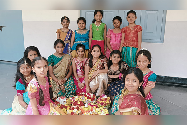 Students across all classes actively participated in the Bathukamma festivities. They brought or created beautiful floral stacks and enthusiastically danced to traditional folk songs, embracing the essence of Telangana's iconic festival.