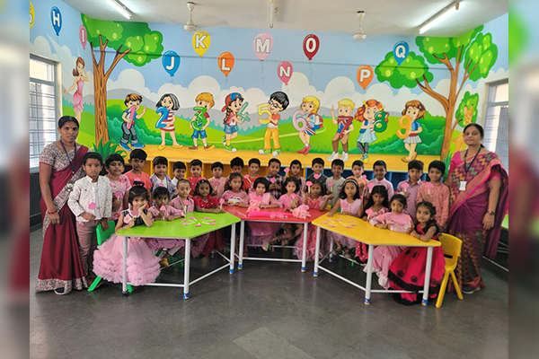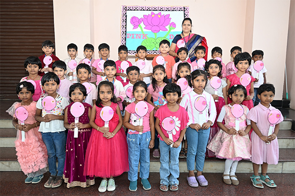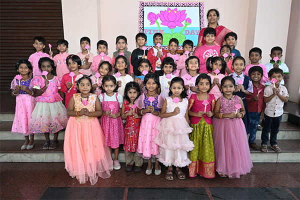 The shining stars of Ramadevi Public School, Foundational Wing, celebrated “Pretty Pink Colour Day” on 28th November, 2025 with great excitement and enthusiasm. Little learners came dressed in beautiful shades of pink, adding charm and vibrancy to the campus. Children also brought their favourite pink objects and confidently spoke a few sentences about them.