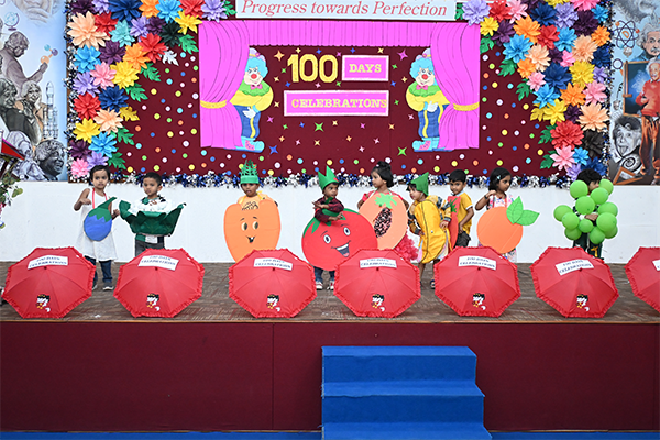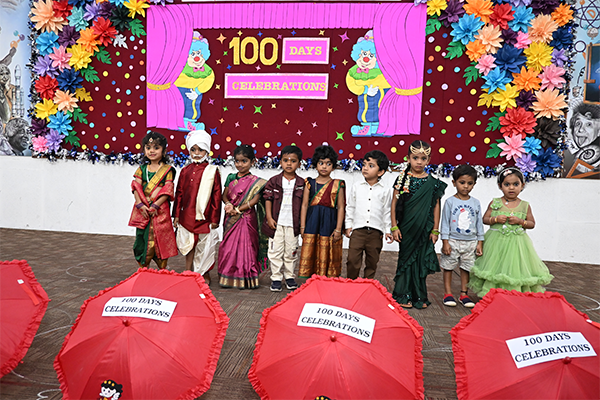 We proudly celebrated our nursery children 100 days event . Our tiny learners have been growing, learning, playing, and enjoying their school time every day. On this special day we had celebrations in the assembly hall. The children started the programme with a devotional song. They also narrated a Telugu story, showing their confidence and speaking skills.