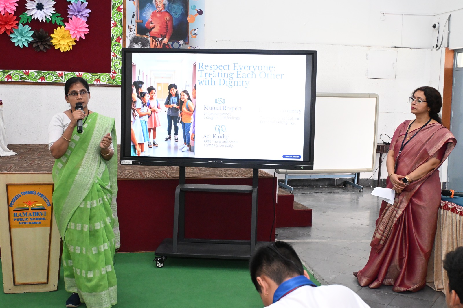 Mr. Pavan Kumar Class teacher of 9E, provided the technical support and Mrs. Arundhati Mukherjee, Class Coordinator of 9 was overall incharge of the same.