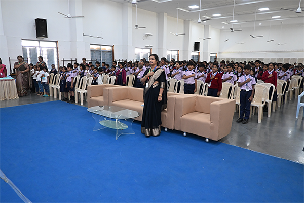 A special assembly on December 31st, 2025 – kicked off with a thought-provoking math quote, followed by a speech on significance of National Mathematics Day. The tiny tots of classes 1-2 charmed everyone with shape-themed poems. Master Shashivardhan Reddy of class 2, presented his mathematical skills. The assembly's highlights included a soulful song on Ramanujan's legacy and an energetic dance performance showcasing math symbols and angles.