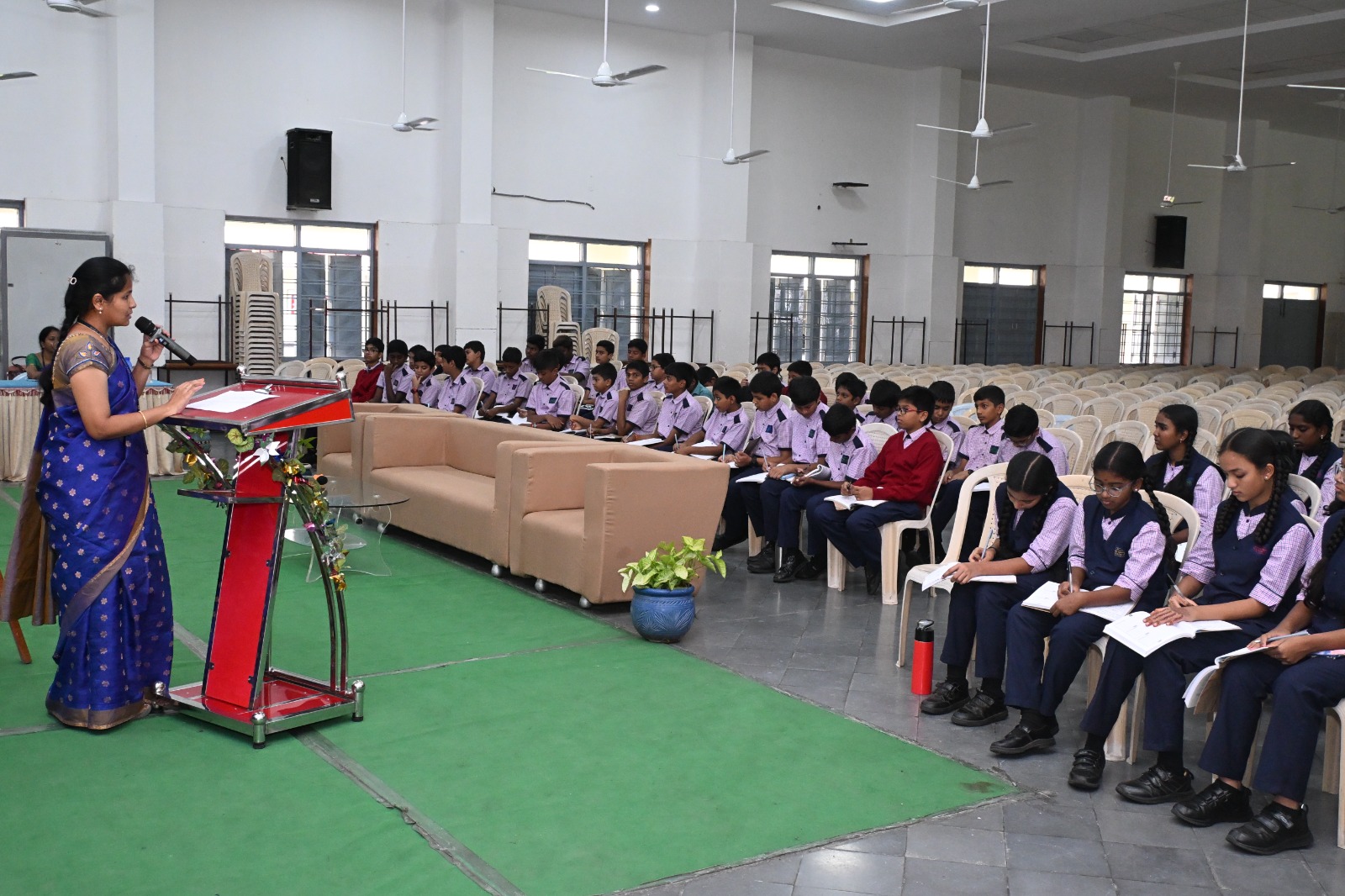 The session began with an introduction of the students' leaders and welcoming them to the team of leaders by the Academic co-ordinator Mrs Poojitha. They were told about the importance of student leadership in creating a positive and disciplined learning environment. Mrs Bahumathi, facilitator from the Chemistry department, explained the roles and responsibilities of monitors, which included assisting teachers, maintaining discipline, promoting class unity, and serving as a link between students and staff.